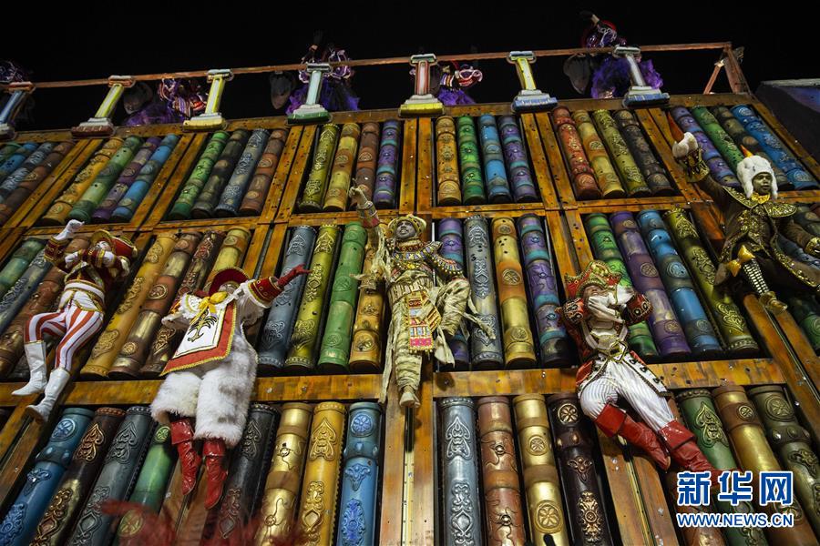 3月3日,在巴西里約熱內(nèi)盧,特級(jí)組桑巴舞校工作人員參加狂歡節(jié)游行。 3月3日晚,2019年里約熱內(nèi)盧狂歡節(jié)特級(jí)組桑巴舞校在桑巴大道開(kāi)始花車巡游表演。 新華社記者李明攝