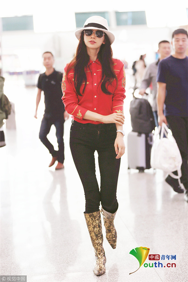 2019年2月17日訊,近日林志玲現(xiàn)身深圳寶安機(jī)場,戴著圓禮帽的她黑超遮面,身著紅色襯衣加黑色緊身牛仔褲,一雙長腿吸睛十足,見鏡頭跟拍再不時(shí)歪頭揮手,超級可愛!
