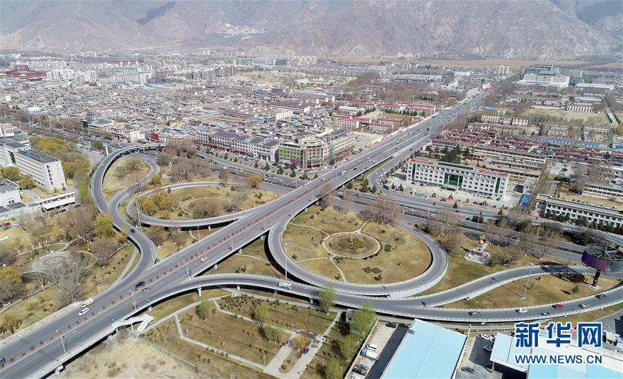 這是建在拉薩市西郊的立交橋(4月3日無人機拍攝)。 新華社記者 晉美多吉 攝
