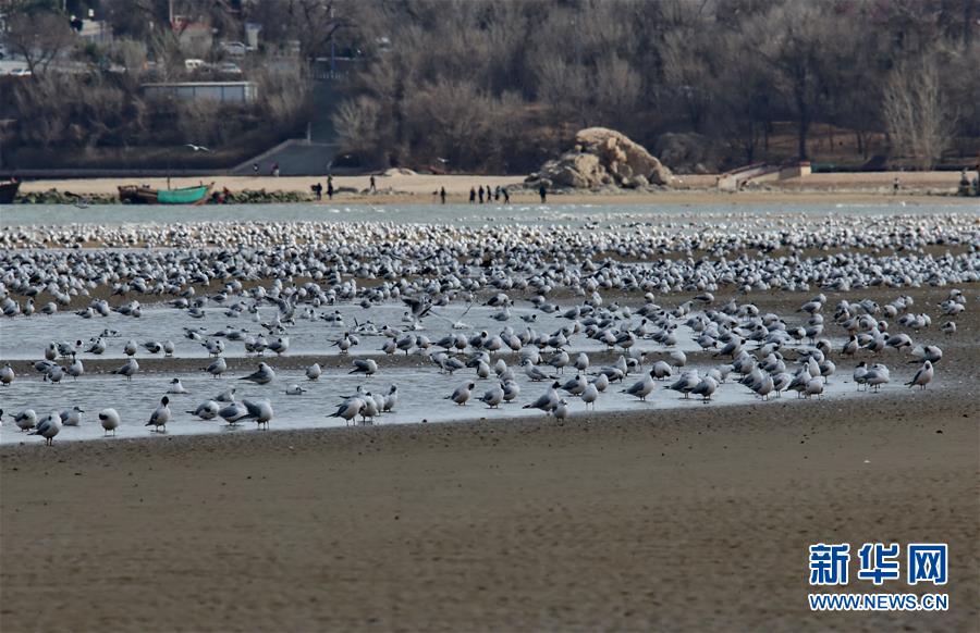 4月4日,一群候鳥在秦皇島市沿海濕地休憩。近日,大批候鳥飛抵河北省秦皇島市沿海濕地,出現(xiàn)“萬鳥臨?!逼嬗^。秦皇島沿海濕地鳥類食物豐富,每年春、秋兩季,大批候鳥遷徙經(jīng)過這里。新華社記者 楊世堯 攝
