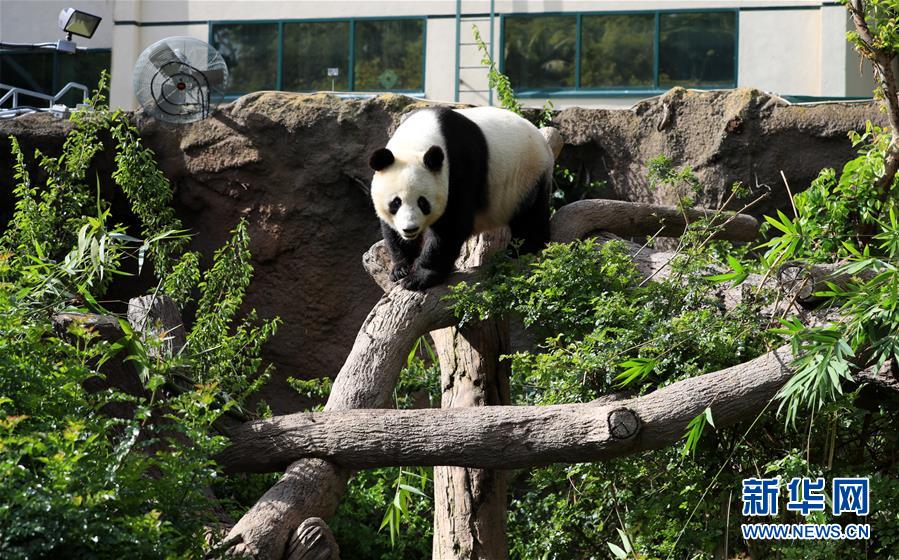 這是4月6日在美國(guó)圣迭戈動(dòng)物園熊貓館拍攝的大熊貓“白云”。新華社記者李穎攝