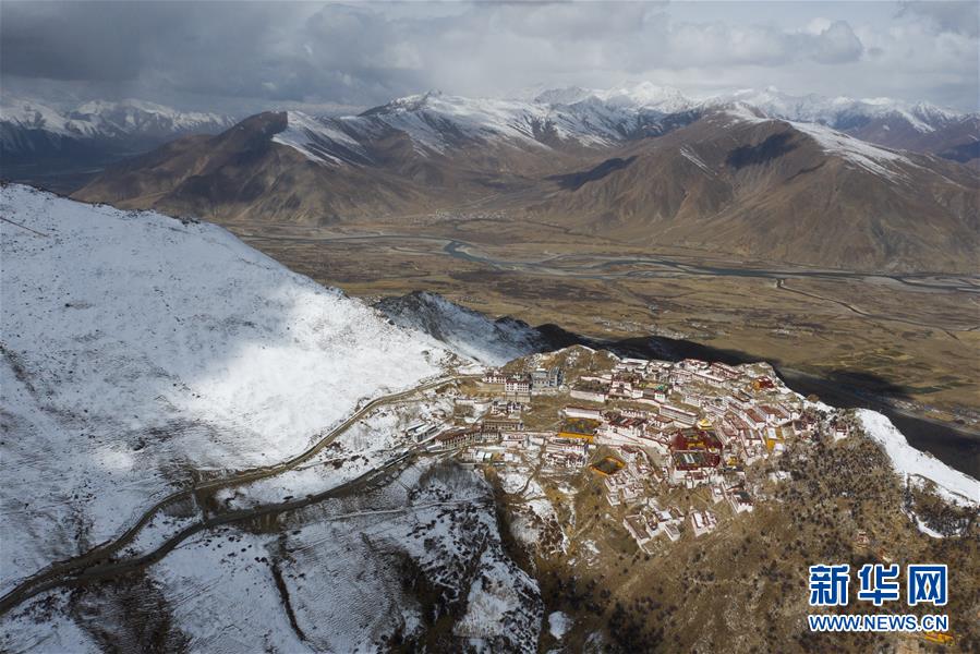 雪后的甘丹寺(4月8日無人機拍攝)。新華社記者普布扎西攝