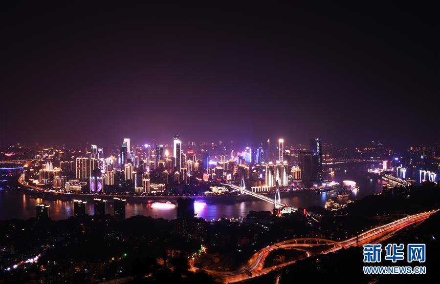 這是4月9日拍攝的重慶城市夜景。 千里為重,廣大為慶。城在山水間、山水在城中,重慶頗具特色的立體城市景觀是城市靚麗的名片。 新華社記者 王全超 攝
