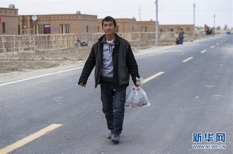 依明在新疆于田縣達里雅布依小鎮(zhèn)易地扶貧安置點參觀(3月19日攝)。新華社記者 胡虎虎 攝