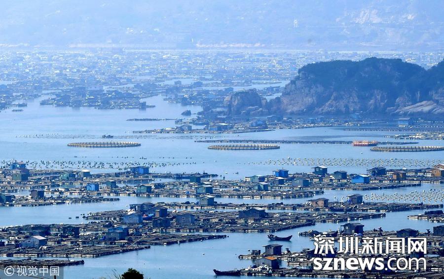 2018年10月26日,在福建連江海域上,“海上田園”網(wǎng)箱羅列,漁排上搭建的木屋錯落成“戶”,蔚為壯觀,成為一道獨特的風(fēng)景線。福建省連江縣是中國鮑魚養(yǎng)殖第一大縣。