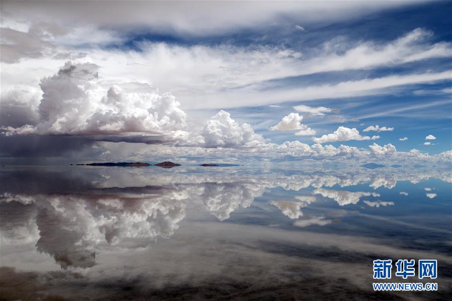 這是2017年1月10日在玻利維亞烏尤尼鹽沼拍攝的“天空之鏡”。 新華社記者李明攝