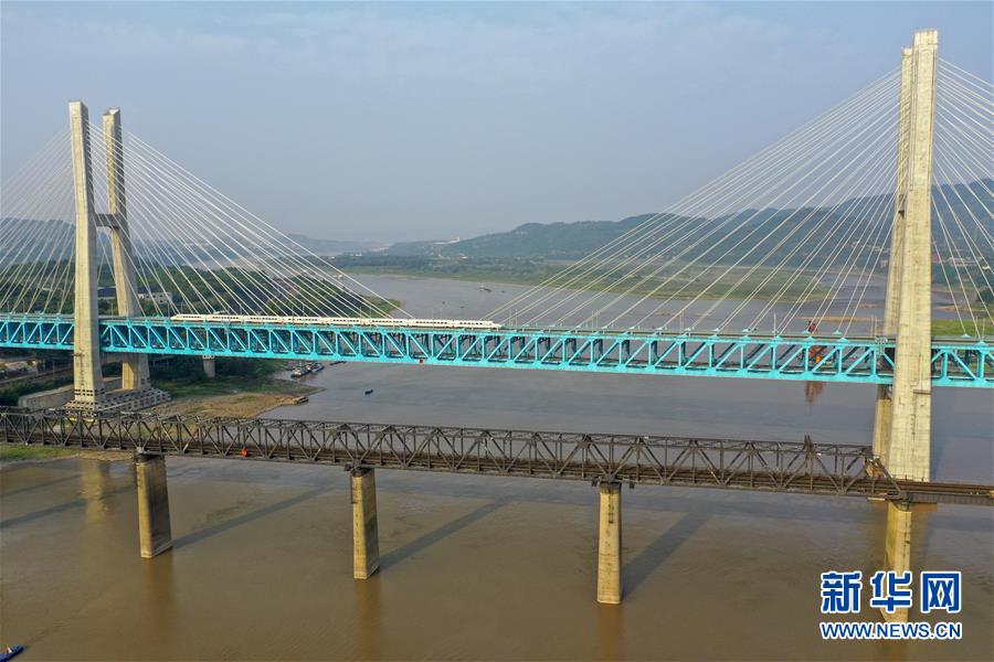 一列高鐵列車從新白沙沱長(zhǎng)江特大橋上駛過(guò)(4月23日無(wú)人機(jī)拍攝)。 4月23日下午5點(diǎn)40分,隨著重慶白沙沱長(zhǎng)江大橋通行的最后一列客運(yùn)列車順利通過(guò),這座“服役”了59年的重慶首座長(zhǎng)江大橋進(jìn)入“退役”倒計(jì)時(shí)。4月24日后,所有列車將改線經(jīng)距白沙沱長(zhǎng)江大橋約100米的新白沙沱長(zhǎng)江特大橋通行,新橋“接力”老橋,運(yùn)輸能力將得到大幅提升。 白沙沱長(zhǎng)江大橋于1958年開(kāi)工,1960年通過(guò)首趟列車,是繼武漢長(zhǎng)江大橋之后的第二座長(zhǎng)江大橋。 新華社記者 劉潺 攝