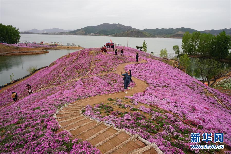4月24日,游人在雨花谷景區(qū)游覽。近日,河北省遷西縣雨花谷景區(qū)的芝櫻花盛開(kāi),吸引游客前來(lái)觀賞。 新華社記者 楊世堯 攝