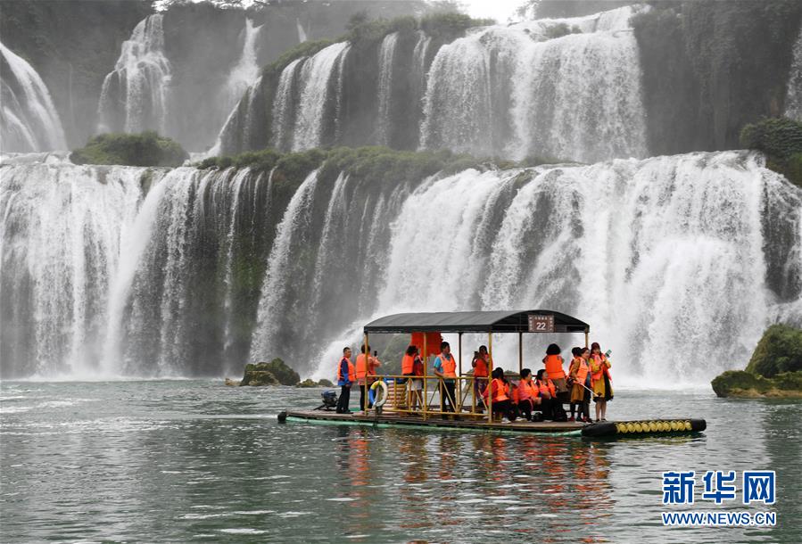 游客在廣西大新縣德天瀑布景區(qū)觀光(4月17日攝)。 新華社記者 陸波岸 攝