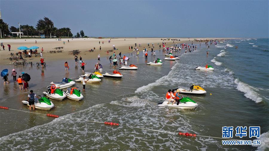 這是游客在北海銀灘游玩(4月18日無人機拍攝)。 北部灣畔南端的江山半島,76公里海岸線上,昔日沿岸漁村如今“長”出20多個景區(qū)。每逢節(jié)假日,四面八方的游客將這里堆得人山人海。 近年來,北部灣國際旅游度假區(qū)正成為廣西旅游業(yè)的一顆耀眼明珠。在綠色之海、開放之海理念的指導下,發(fā)展的東風掀開這片南疆海域 “面紗”,昔日漁港正變?yōu)闉I海旅游勝地。 新華社記者張愛林攝