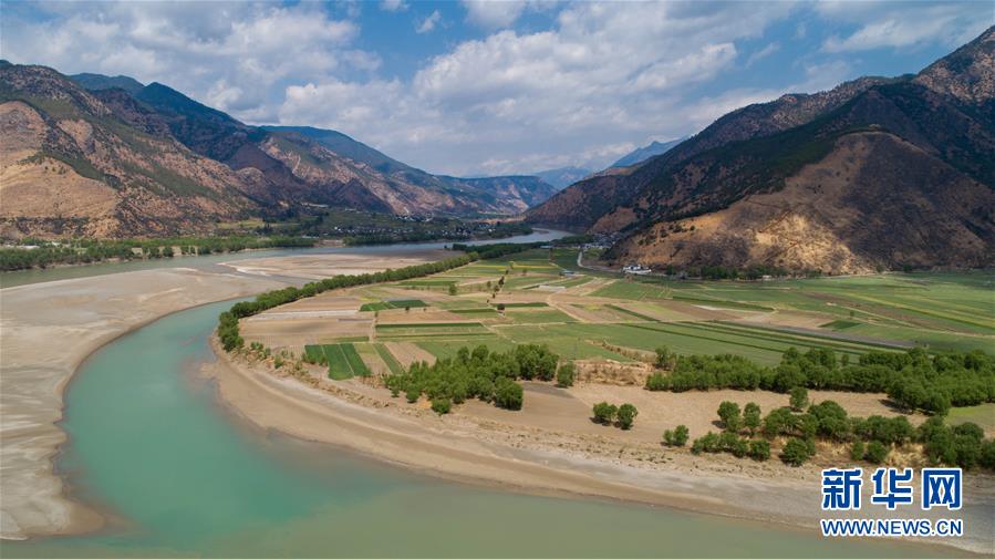 這是無人機拍攝的“長江第一灣”一景(3月17日攝)?!伴L江第一灣”位于云南省麗江市玉龍納西族自治縣石鼓鎮(zhèn),萬里長江從青藏高原奔騰而下,與瀾滄江、怒江一起在橫斷山脈的高山深谷中穿行形成并流的壯麗景觀。金沙江在麗江石鼓鎮(zhèn)突然以急轉(zhuǎn)彎轉(zhuǎn)向東北,形成一個宛若“V”字形的大轉(zhuǎn)彎,得名“長江第一灣”。春日里,“長江第一灣”江水青碧,美景迷人。 新華社記者胡超攝