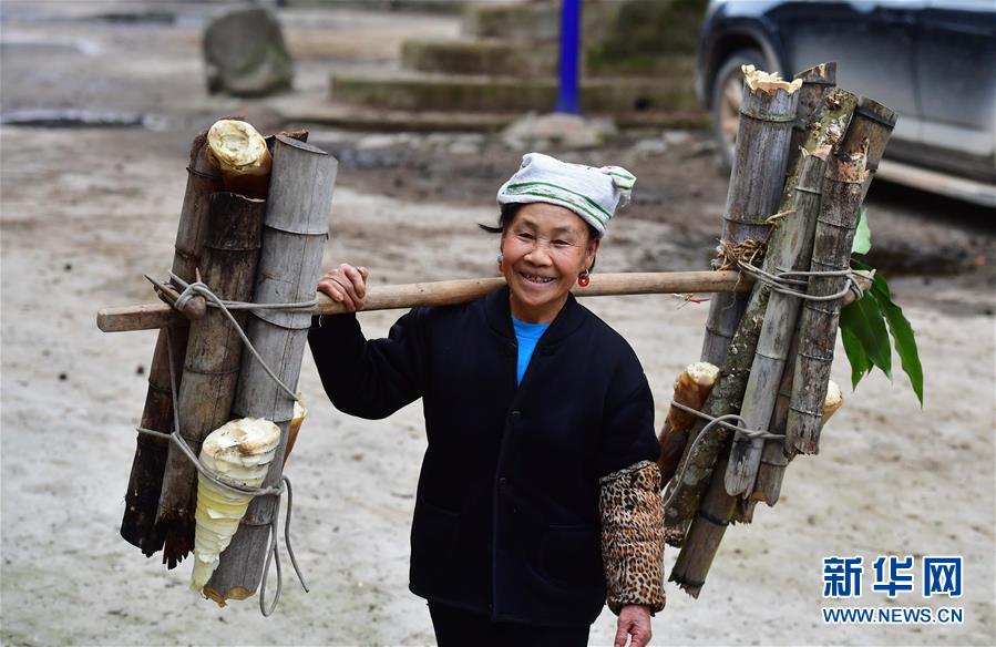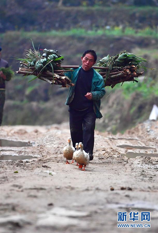 在黔桂烏英苗寨,村民勞作歸來(3月18日攝)。 新華社記者 黃孝邦 攝