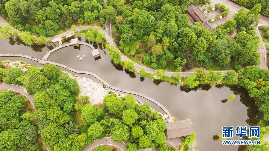 這是5月1日無(wú)人機(jī)拍攝的重慶璧山觀音塘濕地公園景象。