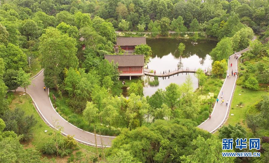 這是5月1日無人機(jī)拍攝的重慶璧山觀音塘濕地公園景象。新華社記者 王全超 攝