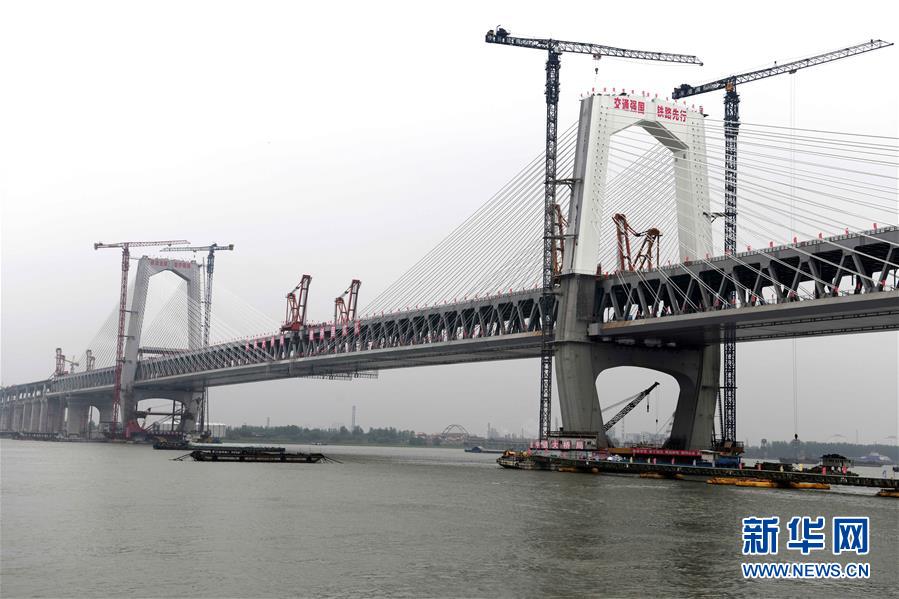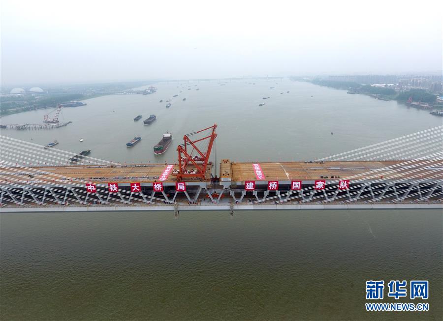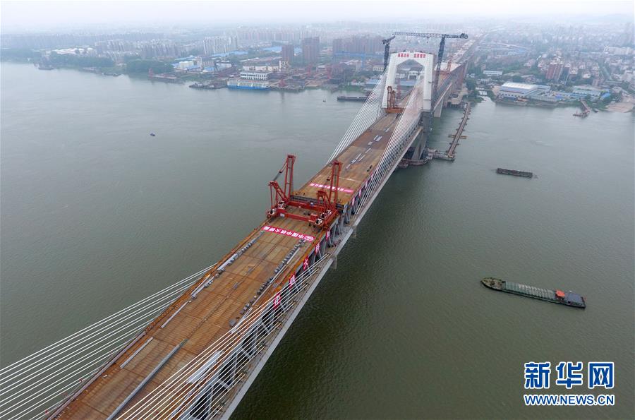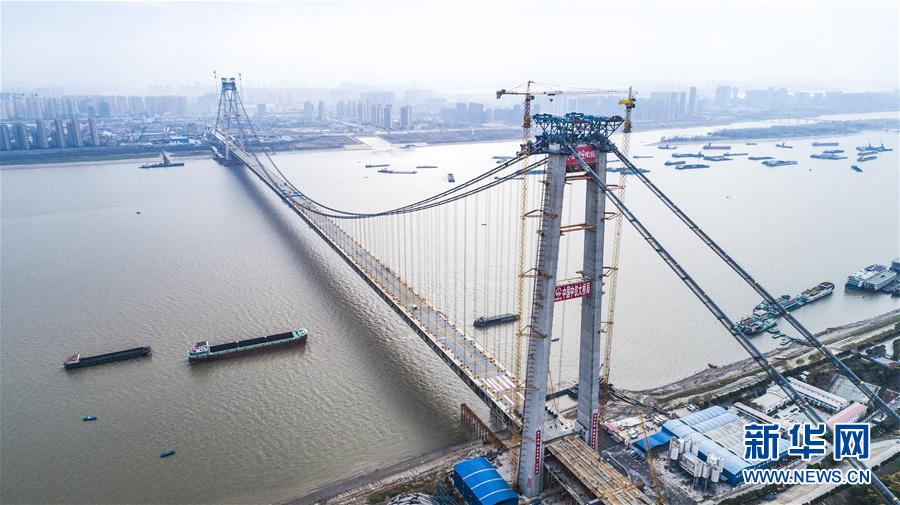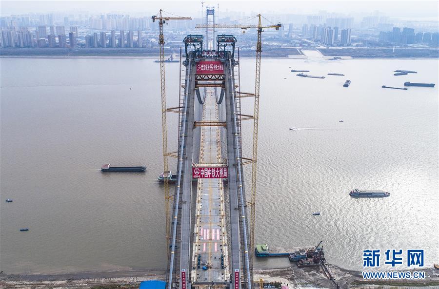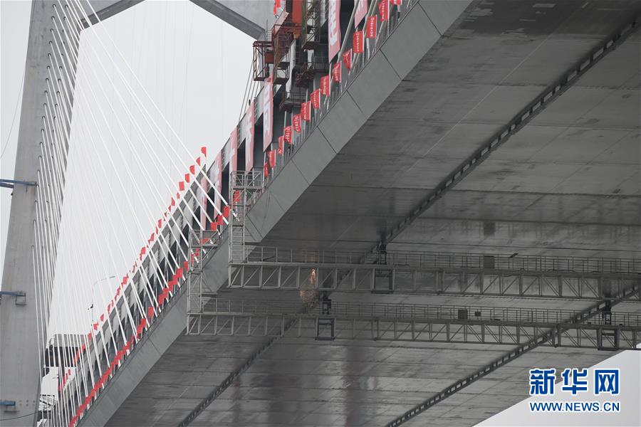 當(dāng)日,隨著最后一節(jié)鋼梁吊裝到位,由中鐵大橋院設(shè)計(jì)、中鐵大橋局施工的武漢楊泗港長江大橋順利合龍,標(biāo)志著這座世界最大跨度雙層公路懸索橋主體工程完工,進(jìn)入橋面鋪裝階段。 武漢楊泗港長江大橋是武漢市內(nèi)建設(shè)的第十座長江大橋,也是長江上首座雙層公路大橋。 新華社記者 肖藝九 攝