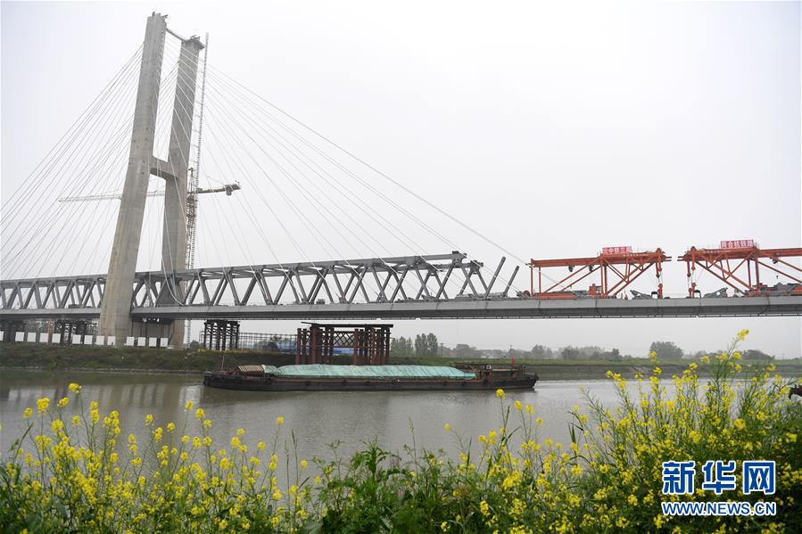 這是合龍后的商合杭鐵路裕溪河特大橋(4月22日攝)。新華社記者劉軍喜攝