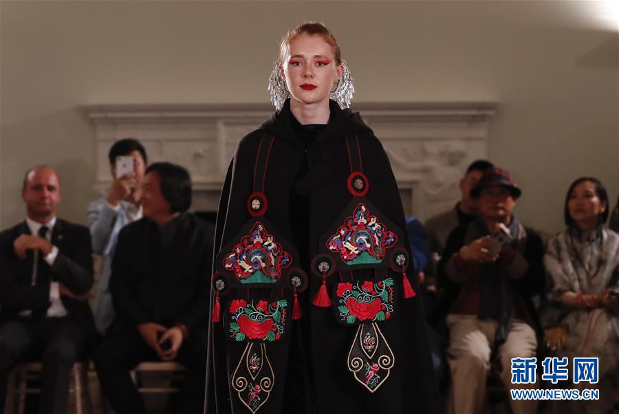 5月8日,一名模特在英國(guó)倫敦走秀。 由浙江省文化和旅游廳舉辦的浙江傳統(tǒng)工藝創(chuàng)新展8日在倫敦開幕。為期4天的展覽是第五屆倫敦手工藝周的重要活動(dòng)之一。 新華社記者 韓巖 攝