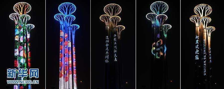5月14日,國家會議中心和奧林匹克塔交相輝映。 當(dāng)晚,一場“空間光影秀”在北京上演。 新華社記者 李賀 攝
