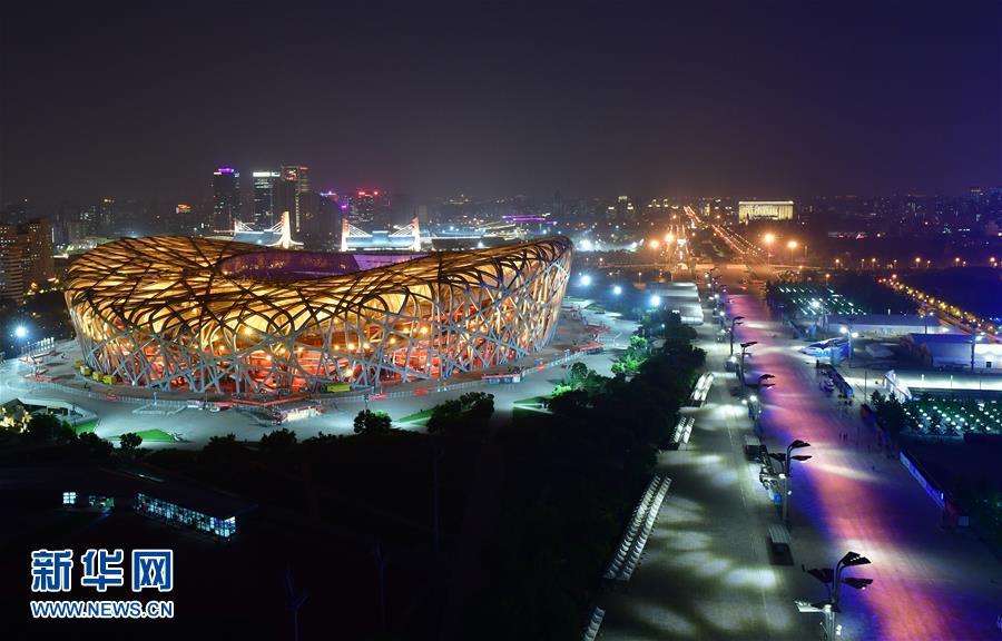 “鳥巢”燈光璀璨(5月14日攝)。 當(dāng)晚,一場“空間光影秀”在北京上演。 新華社記者 沈伯韓 攝