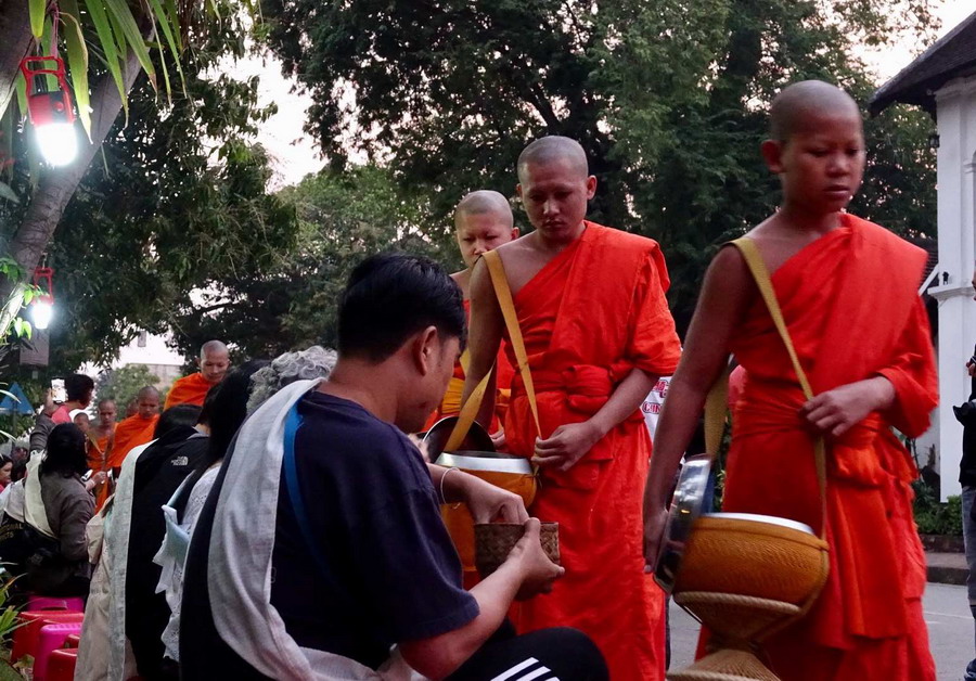 隨著旅游業(yè)的發(fā)展,現在游客們也都參與到布施活動中。僧侶們一直保持著依靠清晨化緣得來的食物充饑的習俗,多余的食物會用于慈善活動。