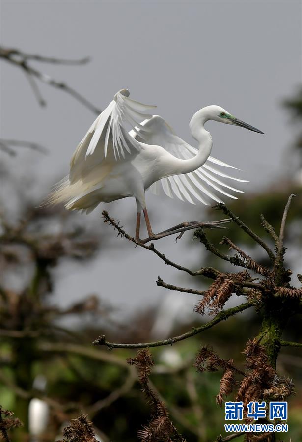 在江西省南昌市新建區(qū)象山森林公園內(nèi),一只白鷺正降落在枝頭(5月21日攝)。 近日,在江西省南昌市新建區(qū)象山森林公園內(nèi),已安家筑巢的大批鷺鳥(niǎo)陸續(xù)孵化出了后代。象山森林公園有著“鷺鳥(niǎo)王國(guó)”的美譽(yù),生態(tài)環(huán)境良好,每年都會(huì)吸引白鷺、蒼鷺、夜鷺等種類(lèi)的鷺鳥(niǎo)飛抵棲息和繁衍后代。 新華社記者 彭昭之 攝
