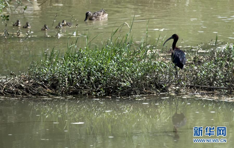 5月21日,一群野鴨從棲息在漢江濕地公園里的一只彩鹮身邊游過。 近日,國家二級保護(hù)動物彩鹮現(xiàn)身陜西省漢中市漢江濕地公園濂水河與漢江交匯處。 據(jù)陜西師范大學(xué)生命科學(xué)院教授于曉平介紹,彩鹮在世界上的分布比朱鹮還要少,這幾年在云南發(fā)現(xiàn)得多一些,這3只彩鹮現(xiàn)身漢江濂水河畔,是陜西首次發(fā)現(xiàn)彩鹮蹤跡。 據(jù)了解,彩鹮是國家二級保護(hù)動物,屬鵜形目鹮科,體羽大部為青銅栗色,是珍稀鳥類朱鹮的“近親”,體型比朱鹮略小。 新華社記者陶明攝