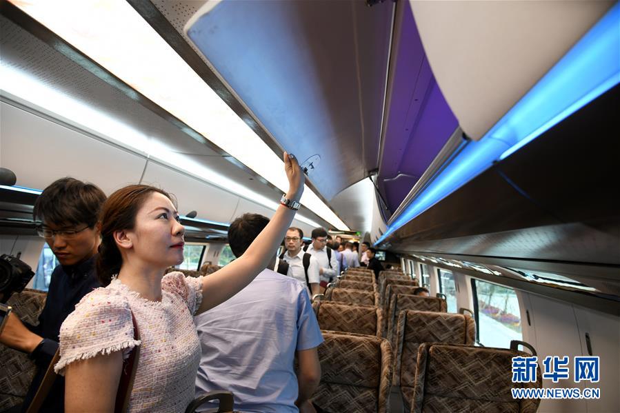 5月23日,參觀人員在時(shí)速600公里高速磁浮試驗(yàn)樣車上參觀。新華社記者李紫恒 攝