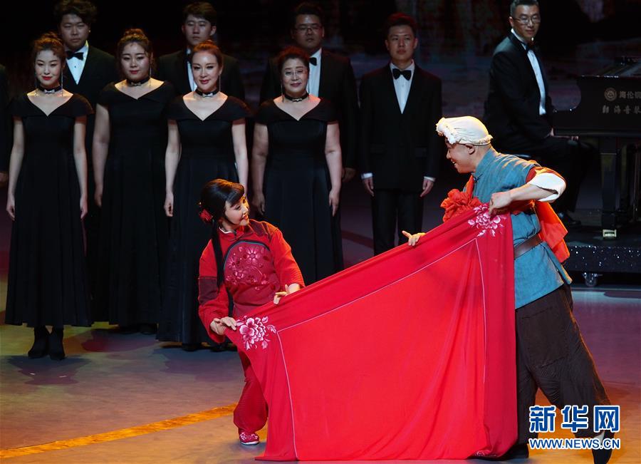 6月2日,演員在第十二屆中國藝術(shù)節(jié)閉幕式上匯報演出獲得文華大獎的秦腔《王貴與李香香》選段。 新華社記者 任瓏 攝