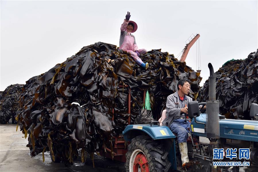 6月5日,在榮成市尋山街道青魚(yú)灘村,漁民在收獲海帶。 近日,山東省榮成市迎來(lái)海帶收獲季。據(jù)悉,榮成市海帶養(yǎng)殖面積14.5萬(wàn)畝,年產(chǎn)海帶43.3萬(wàn)噸以上。 新華社記者郭緒雷攝