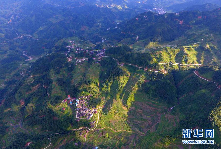 在融水苗族自治縣桿洞鄉(xiāng)黨鳩村下黨鳩屯,道路已經(jīng)修到家家戶戶門前(6月21日無人機拍攝)。新華社記者 黃孝邦 攝
