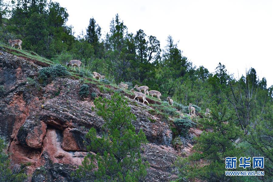 這是在青海省玉樹藏族自治州雜多縣昂賽鄉(xiāng)境內(nèi)拍攝的一群巖羊(6月21日攝)。 新華社記者 張龍 攝