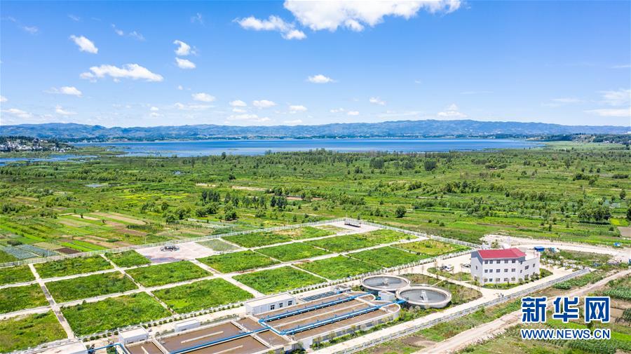 6月20日無人機拍攝的草海國家級自然保護區(qū)萬噸生活污水處理廠。 新華社記者 陶亮 攝
