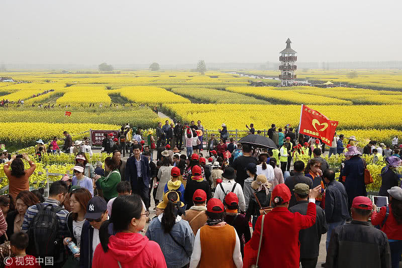 2019年4月7日,江蘇省興化市千垛菜花景區(qū)迎來(lái)旅游高峰期,數(shù)萬(wàn)游客前來(lái)欣賞盛開的油菜花,樂(lè)享假日好時(shí)光。