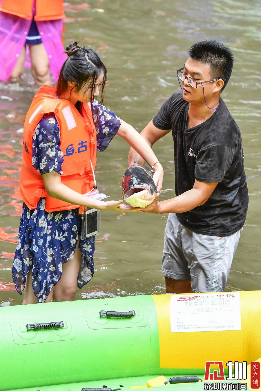 “韋帕”剛登陸廣東,清遠古龍峽漂流景區(qū)就開始泄洪,上萬斤水庫大魚隨著泄洪道“越獄”,引來上千名游客下艇捕魚,漂流河道上演了幾個小時的“人魚”大戰(zhàn),有的捕魚高手竟然捉了一漂流艇的魚回家。
