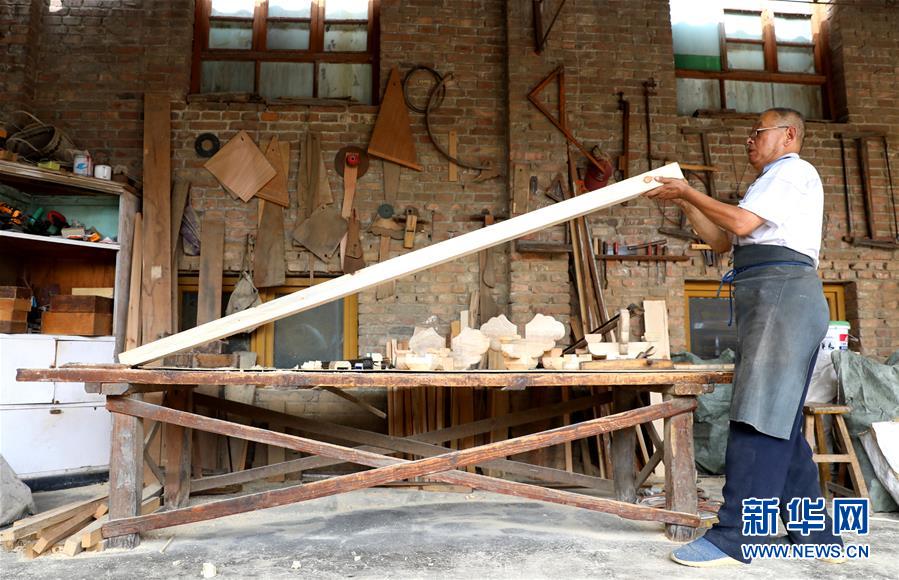 8月7日,在石家莊市井陘礦區(qū)橫西村,韓保元在檢查斗拱。 新華社記者駱學(xué)峰攝