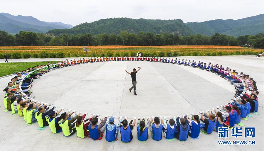 8月8日,游客在伊春市九峰山養(yǎng)心谷景區(qū)進行集體游戲活動。 時值八月,黑龍江省伊春市林區(qū)空氣清新,涼爽宜人,吸引眾多游客。 新華社記者李曉果攝