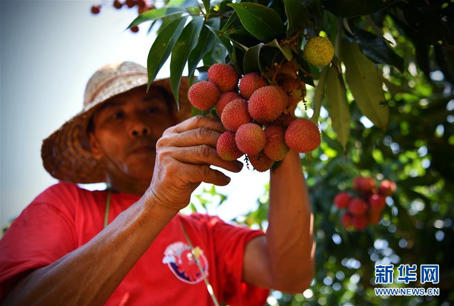 海口市三門坡鎮(zhèn)農(nóng)民在果園采摘荔枝(2019年5月15日攝)。 新華社記者郭程攝