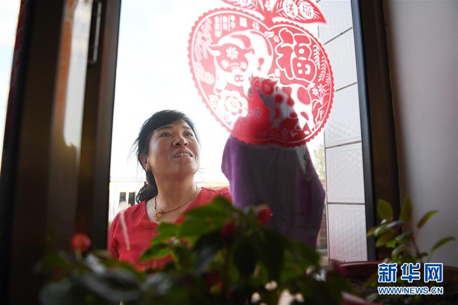 東坪村村民郭金蘭在新房擦玻璃(6月13日攝)。 新華社記者 楊晨光 攝