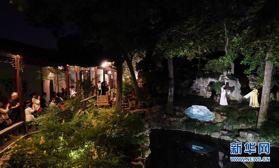 5月29日,觀(guān)眾在江蘇蘇州滄浪亭觀(guān)看新編昆曲《浮生六記》園林版。新華社記者李響攝