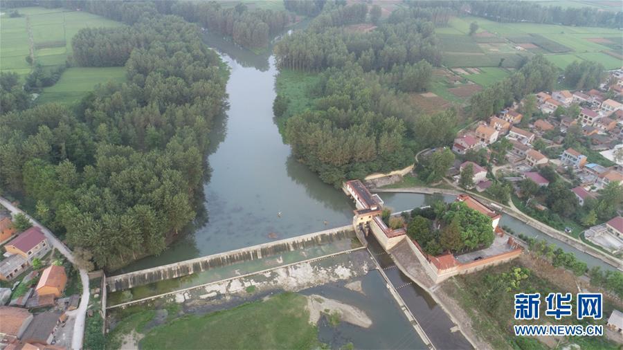 8月14日拍攝的湖北襄陽(yáng)長(zhǎng)渠渠首(無(wú)人機(jī)拍攝)。新華社記者 王虎 攝