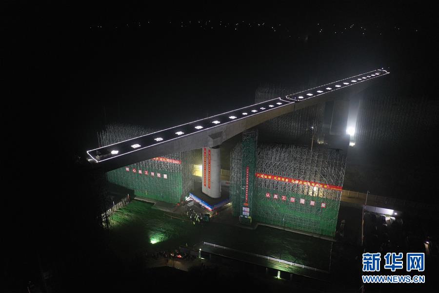 這是8月27日凌晨無人機拍攝的轉體完成的橋梁。新華社記者邢廣利攝