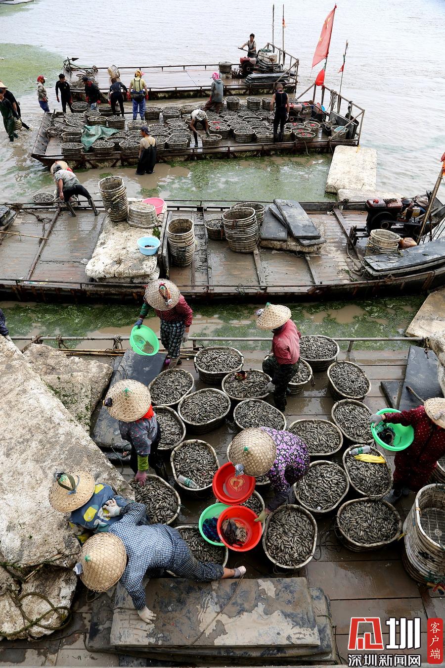 浙江臺州三門縣花橋鎮(zhèn)柵下村的文化禮堂前,村民們冒雨和商販交易蟶苗,現(xiàn)場一片繁忙。