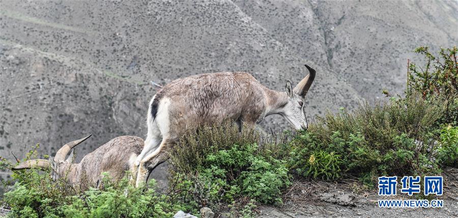 兩只巖羊在西藏山南市洛扎縣色鄉(xiāng)海拔4000米左右的盤(pán)山路邊,悠閑地吃著野果青草(9月22日攝)。 在西藏山南市洛扎縣色鄉(xiāng)海拔4000米左右的盤(pán)山路上,一群巖羊悠閑地吃著野果青草,完全不介意來(lái)往的車輛、行人和近在咫尺的鏡頭。 巖羊是國(guó)家二級(jí)保護(hù)動(dòng)物。近年來(lái),隨著西藏生態(tài)保護(hù)力度加大,巖羊數(shù)量不斷增加。 新華社記者 晉美多吉 攝