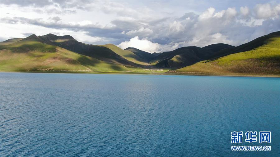 8月31日無(wú)人機(jī)拍攝的羊卓雍錯(cuò)風(fēng)光。新華社記者晉美多吉攝