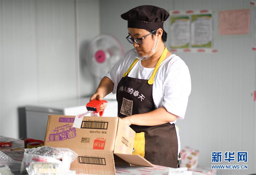 李琛璨在打包車間中給客戶打包發(fā)貨(8月30日攝)。 新華社記者 王松 攝