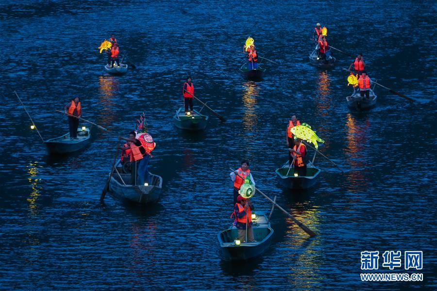 9月25日,在宋村鄉(xiāng)云源港的水面上,漁民劃著漁船,船頭點(diǎn)亮漁燈,構(gòu)成一幅“漁舟唱晚、萬家燈火”的美麗圖景。 新華社記者 徐昱 攝