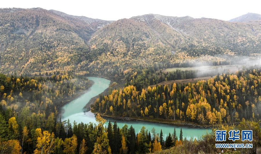 9月24日拍攝的喀納斯景區(qū)風(fēng)光。 新華社記者 王菲 攝