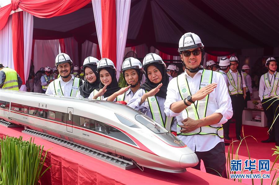 9月30日,在印尼雅萬高鐵首榀箱梁架設(shè)現(xiàn)場(chǎng),幾名印尼嘉賓與“復(fù)興號(hào)”動(dòng)車模型合影。 印度尼西亞雅萬高鐵全線首榀箱梁9月30日架設(shè)成功,高鐵建設(shè)繼續(xù)穩(wěn)步推進(jìn)。雅萬高鐵全長(zhǎng)142公里,最高設(shè)計(jì)時(shí)速350公里,2018年6月全面開工,總工期為36個(gè)月,今年是施工建設(shè)全面提速的關(guān)鍵年。建成通車后,雅加達(dá)至萬隆的時(shí)間將由現(xiàn)在的3個(gè)多小時(shí)縮短至40分鐘。 新華社記者 杜宇 攝