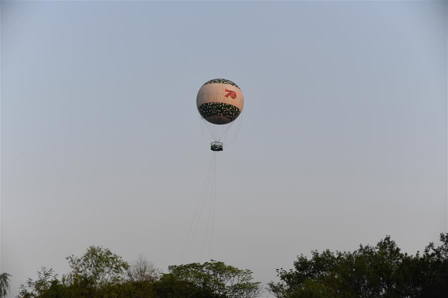 10月3日,游客在西溪國家濕地公園搭乘“空中攬勝”高空氦氣球觀光。 當日是國慶假期第三天,大批游客來到位于杭州的西溪國家濕地公園游玩,在江南詩意的環(huán)境中休閑度假。 新華社記者 黃宗治 攝