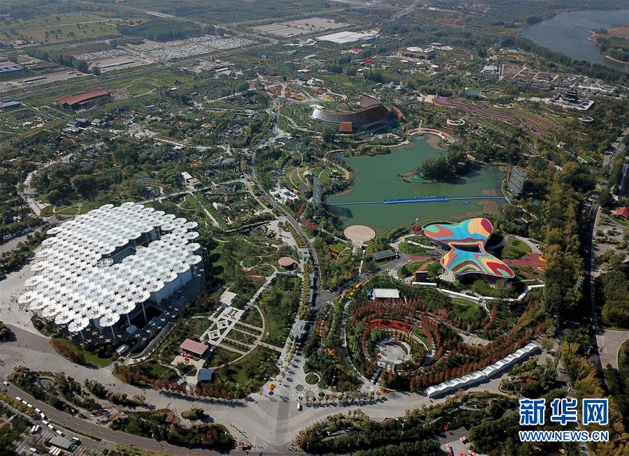 北京世園會園區(qū)(10月6日無人機拍攝)。新華社記者才揚攝